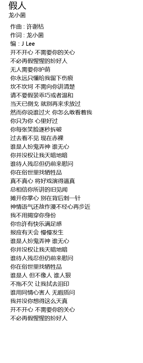 | [00:15.29] | 不必再假惺惺的扮好人 |