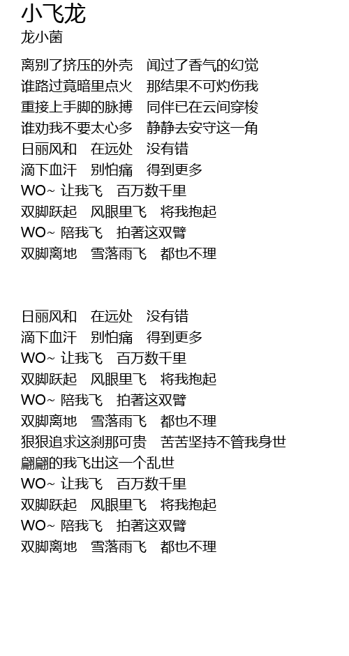 | 双脚跃起 风眼里飞 将我抱起 | |