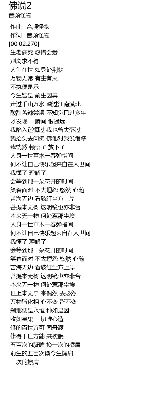 | [03:00.950] | 苦海无边 看破红尘方上岸 |