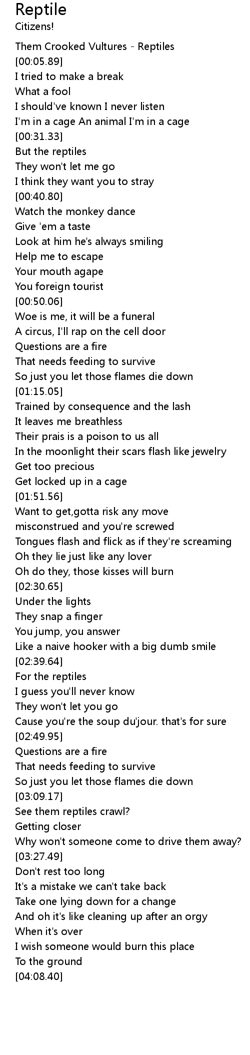 [00:01.12] Them Crooked Vultures - Reptiles