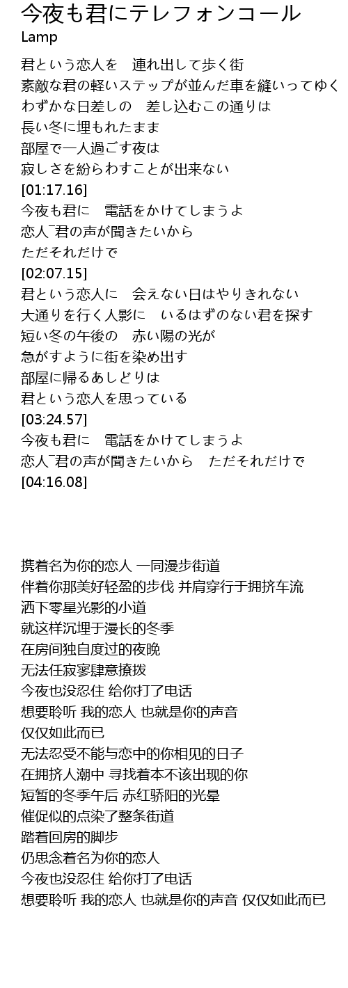 | [01:19.92] | 今夜も君に 電話をかけてしまうよ |