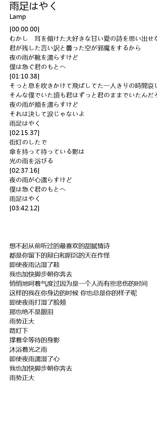 | [03:20.84] | 僕は急ぐ君のもとへ |