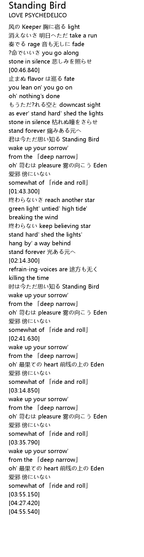 | [02:22.820] | 时は今ただ思い知る Standing Bird |