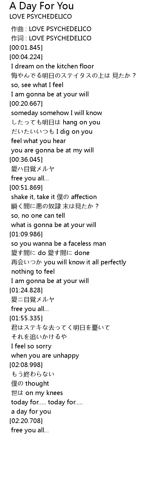 | [00:00.615] | 作词 : LOVE PSYCHEDELICO |