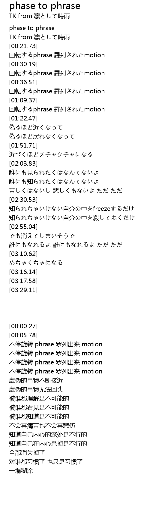 | [00:26.74] | 回転するphrase 羅列されたmotion |