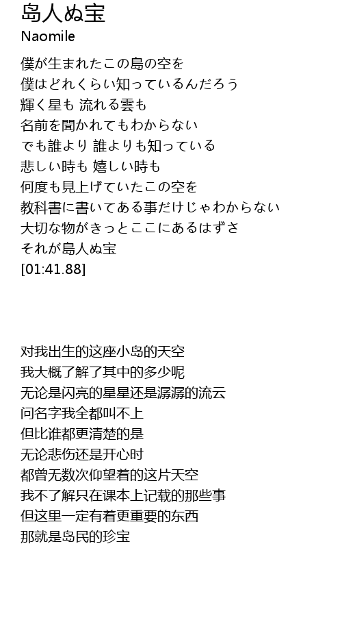 | [01:34.62] | それが島人ぬ宝 |