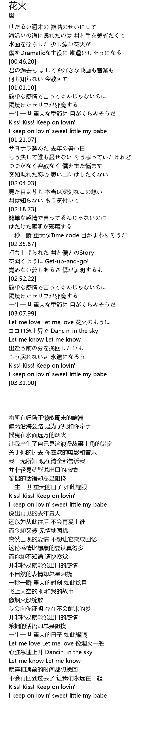 | [03:08.87] | Let me love Let me love 花火のように |