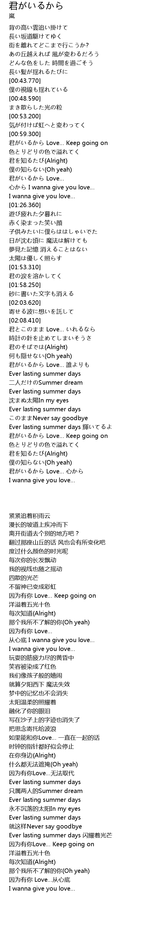 | [02:50.530] | 君がいるから Love… Keep going on |