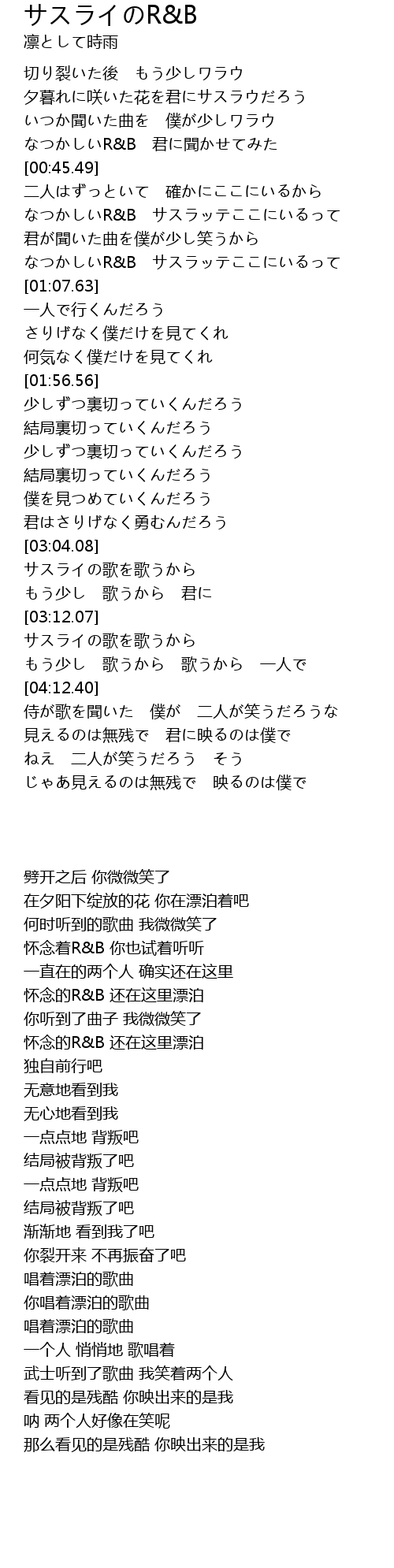 | [01:01.86] | なつかしいR&B サスラッテここにいるって |