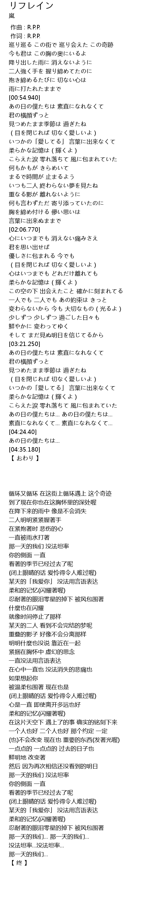 | [00:01.00] | zuò cí : R. P. P. |