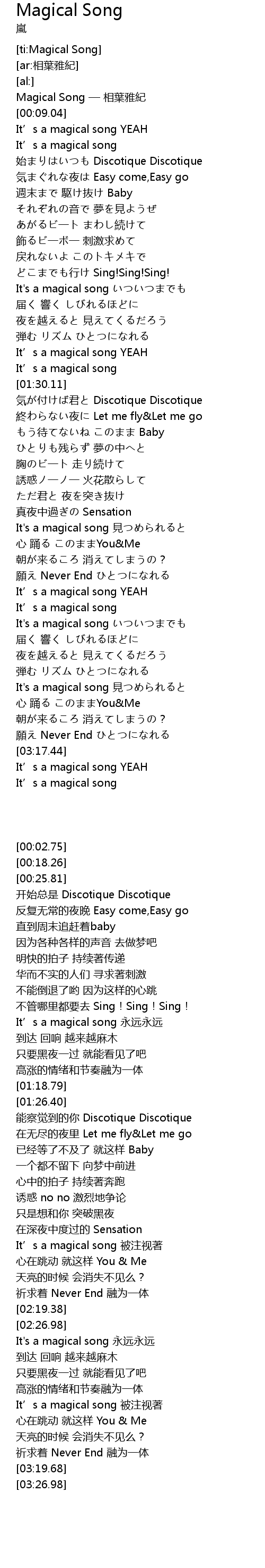 | [00:02.75] | Magical Song — 相葉雅紀 |