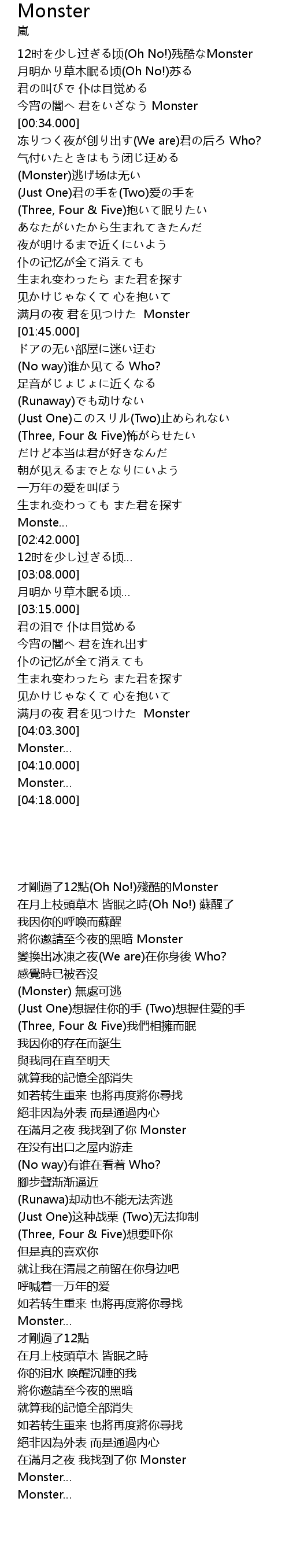 | [00:03.000] | 12时を少し过ぎる顷(Oh No!)残酷なMonster |