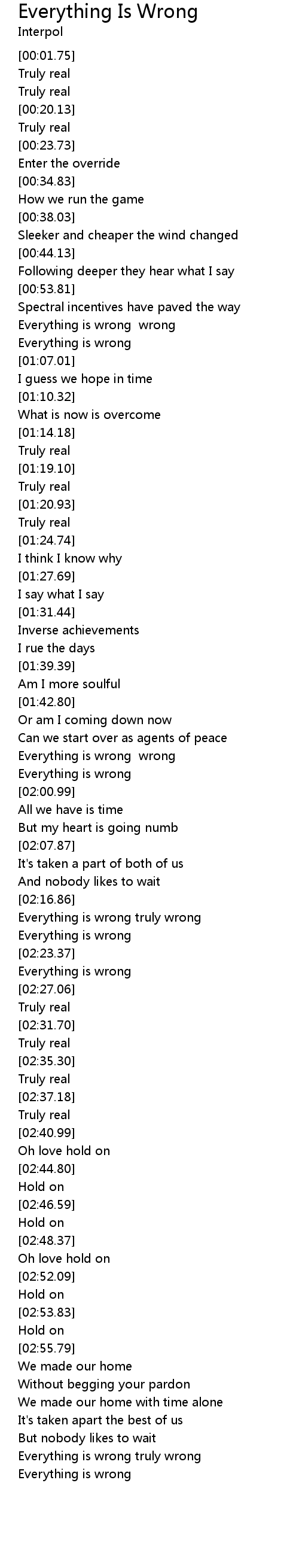 | [02:17.45] | Everything is wrong truly wrong |