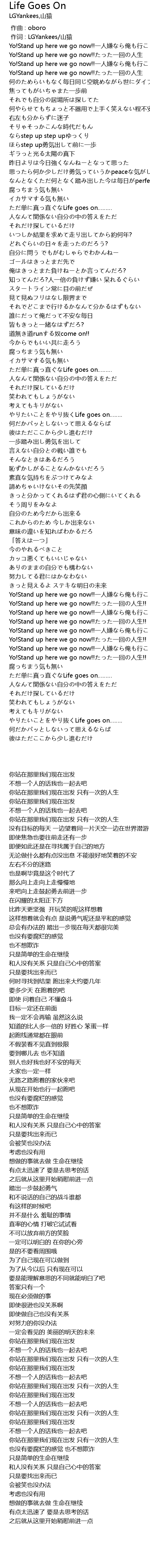 | [05:31.00] | やりたいことをやり抜くLife goes on…….. |