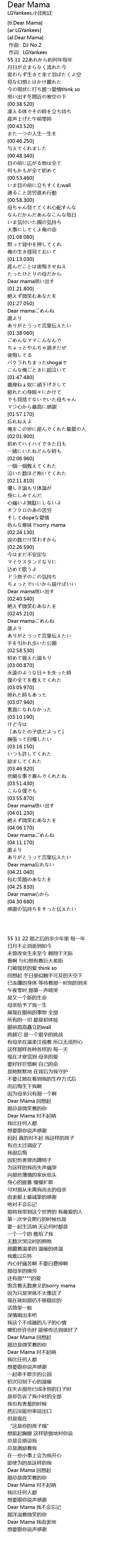 | [01:27.740] | Dear mamaごめんね |