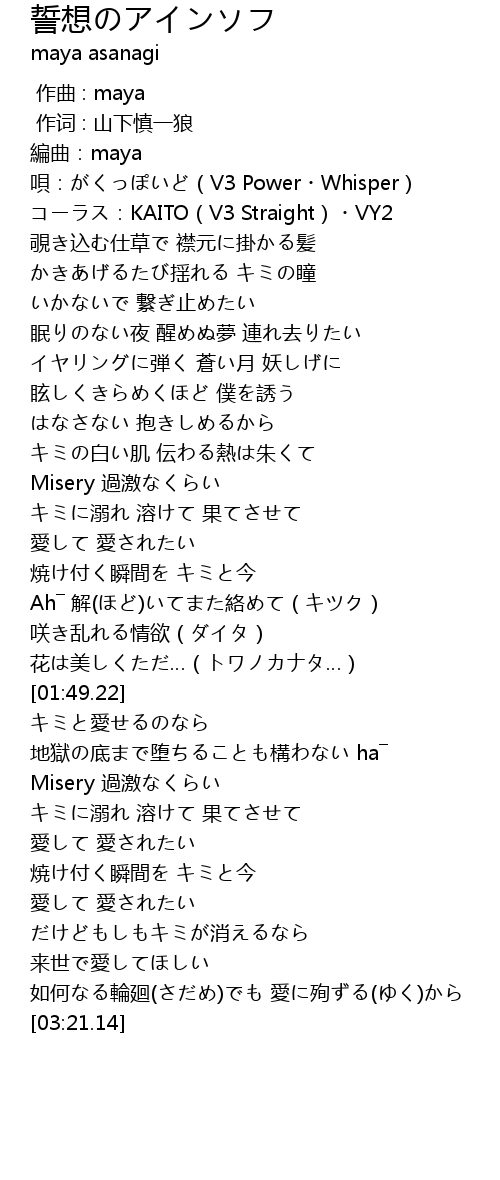 | [00:16.30] | 唄:がくっぽいど(V3 Power・Whisper) |