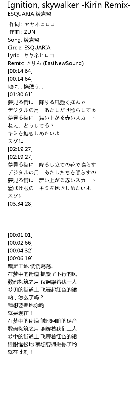 | [00:06.19] | Remix: きりん (EastNewSound) |