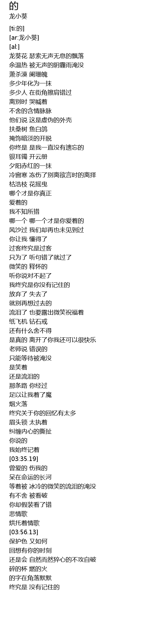 | [04:12.53] | 的字在角落默默 |