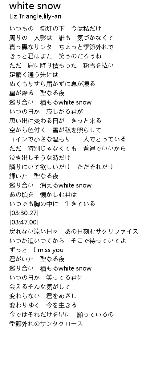 | [03:08.66] | 巡り合い 消えるwhite snow |