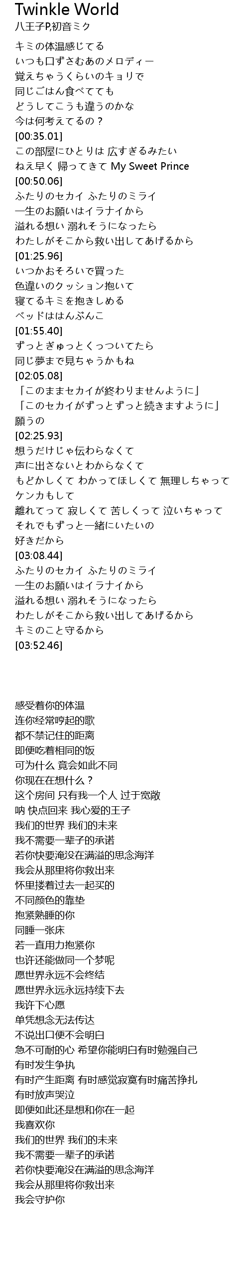 | [03:09.07] | ふたりのセカイ ふたりのミライ |