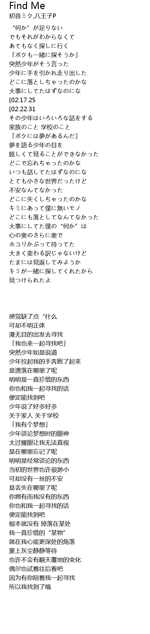| [01:09.59][02:22.31] | きっと見つかるね |