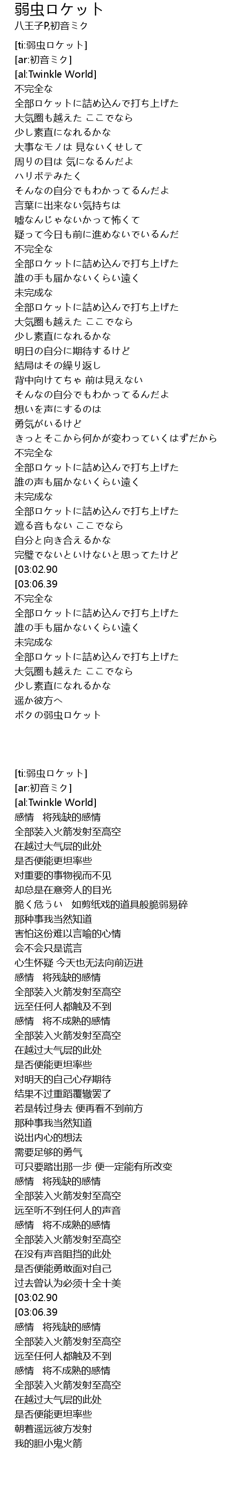 | [ti:弱虫ロケット] | |