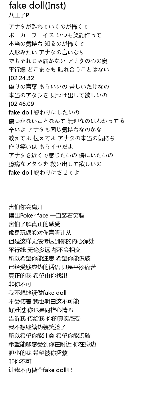 | [02:50.15] | fake doll zhōng |