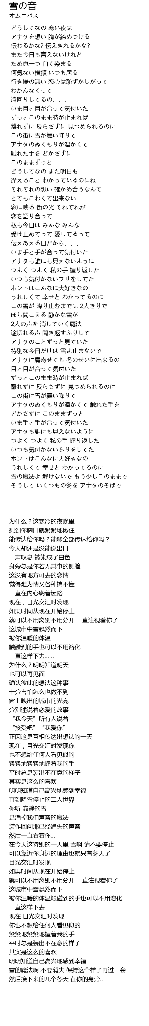| [04:38.375] | そうして いくつもの冬を アナタのそばで |
