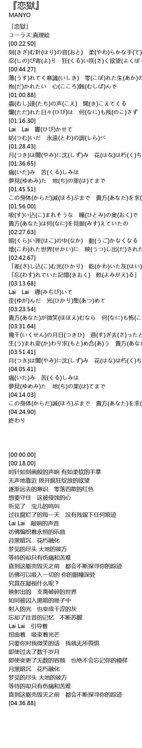 | [01:20.32] | Lai Lai 響(ひび)かせて |