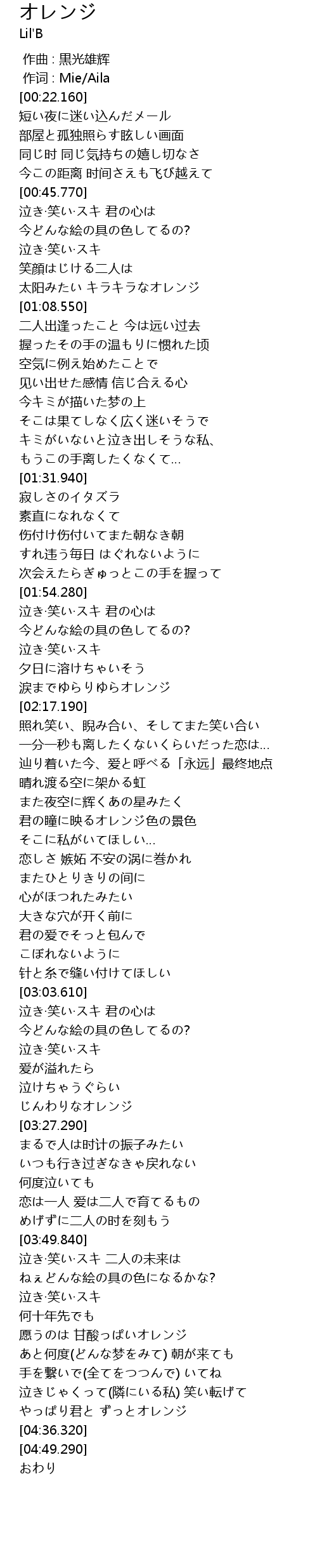| [04:30.230] | やっぱり君と ずっとオレンジ |