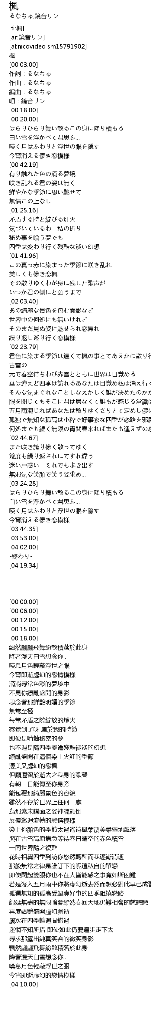 | [00:00.00] | 楓 |