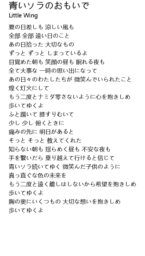 | [02:53:500] | 青いソラ続いてゆく 微笑んだ子供のように |