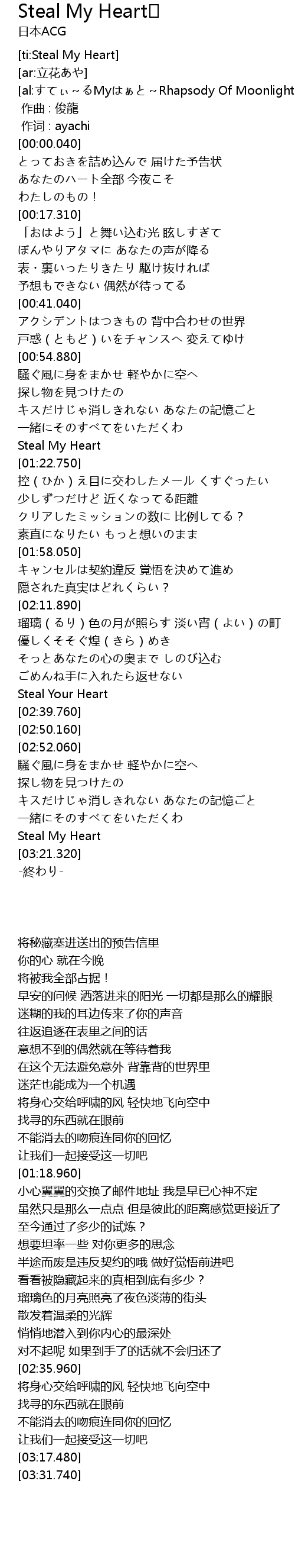 | [00:02.320] | とっておきを詰め込んで 届けた予告状 |