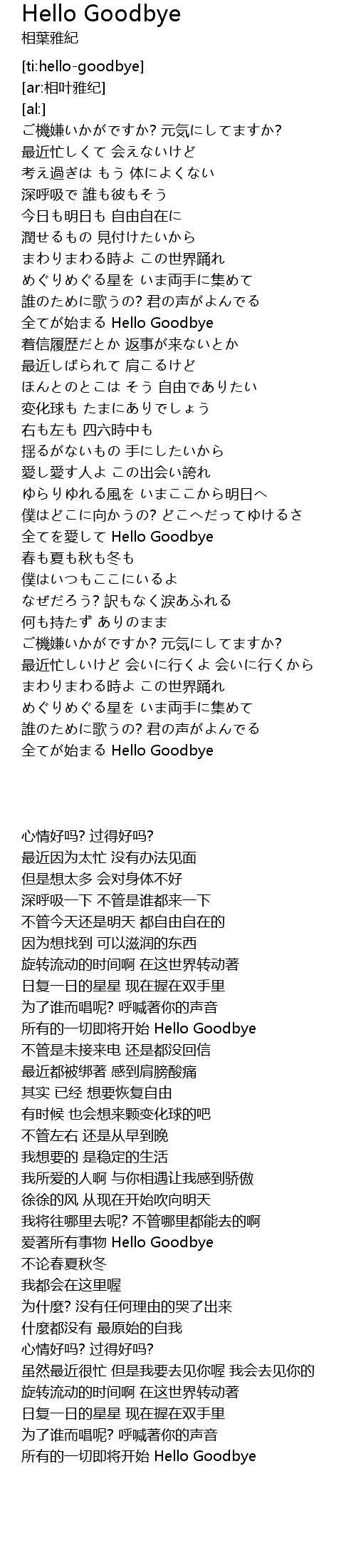 | [03:23.94] | quán shǐ Hello Goodbye |
