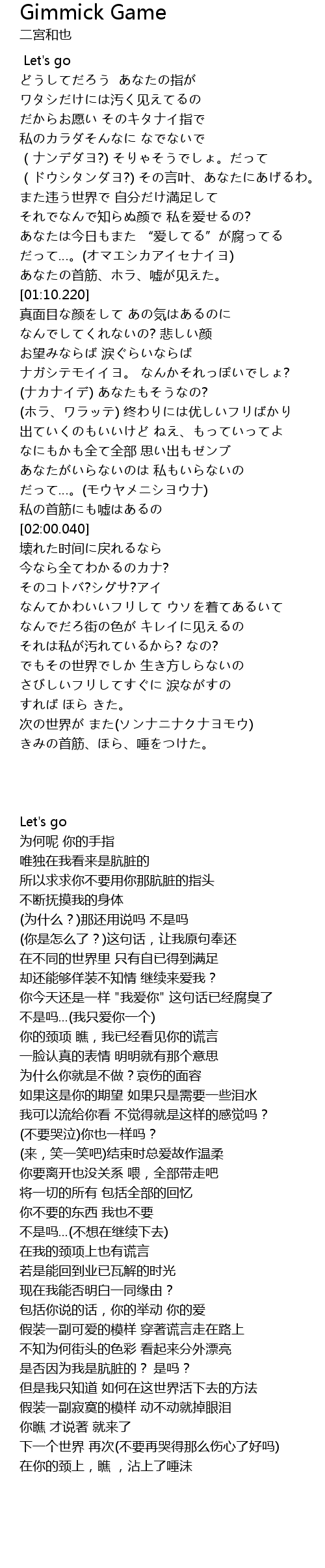 | [01:18.790] | なんでしてくれないの? 悲しい颜 |