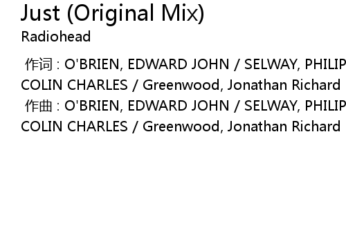 | [00:00.000] | 作曲 : O'BRIEN, EDWARD JOHN / SELWAY, PHILIP JAMES / GREENWOOD, COLIN CHARLES / Greenwood, Jonathan Richard Guy / YORKE, THOMAS EDWARD |
