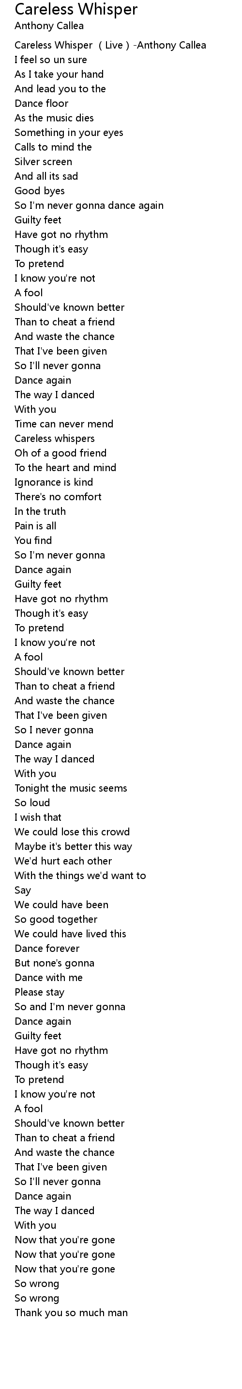| [00:00.269] | Careless Whisper (Live)-Anthony Callea |