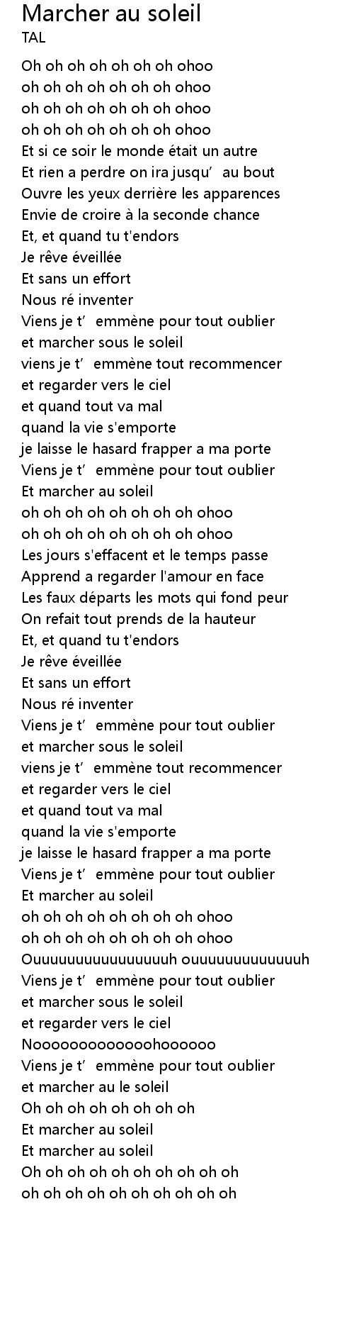 | Song | Marcher au soleil |