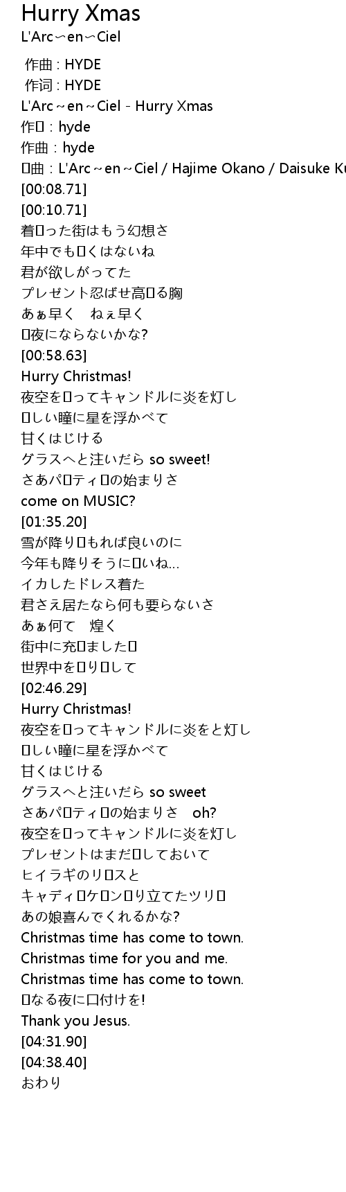 | [00:00.00] | L' Arc en Ciel Hurry Xmas |