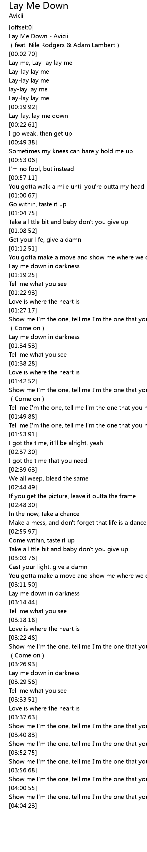 | [00:00.58] | Lay Me Down - Avicii |