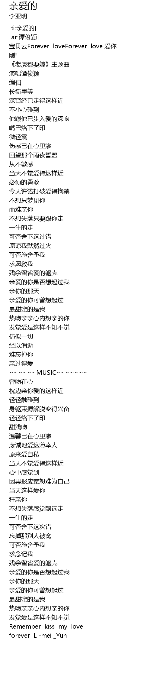 | [00:00.787] | bǎo bèi yún Forever loveForever love ài nǐ |