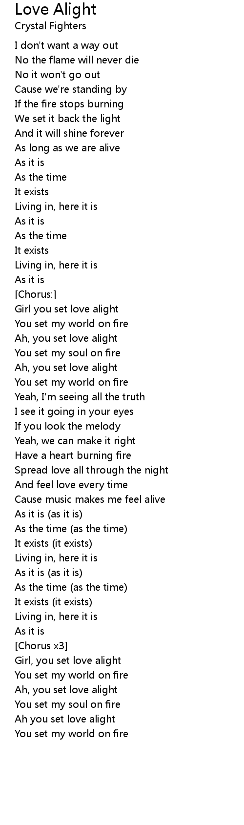 Ah you set love alight |
