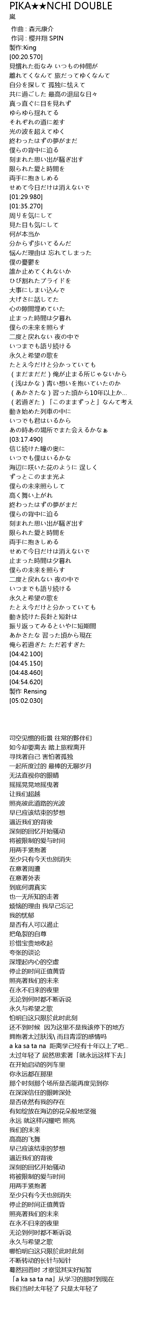 | [00:01.00] | 作词 : 樱井翔 SPIN |