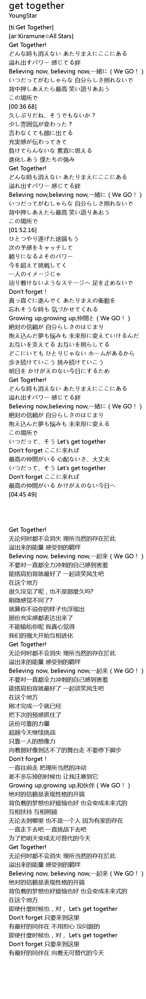 | [03:53.07] | Believing now,believing now,一緒に(We GO!) |