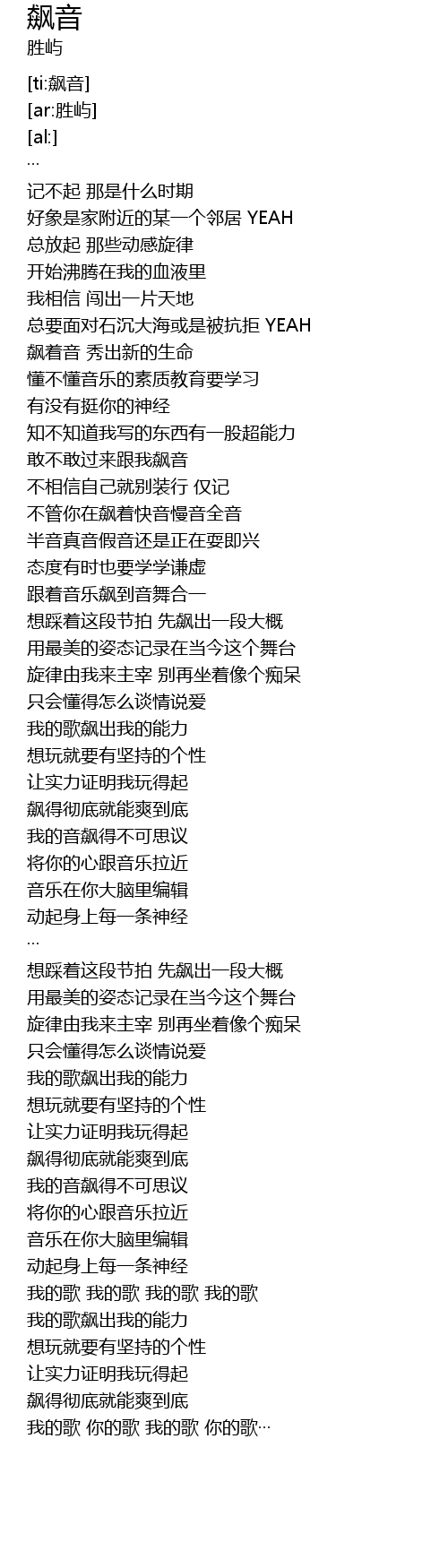 | [00:59.23] | 半音真音假音还是正在耍即兴 |