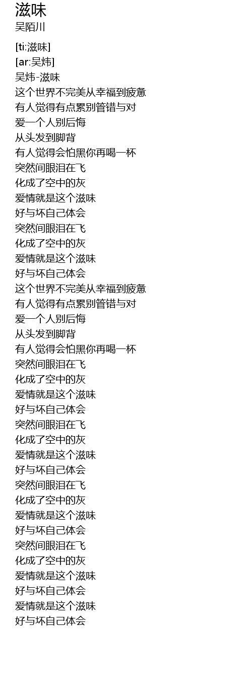 [00:01.314] 吴炜-滋味