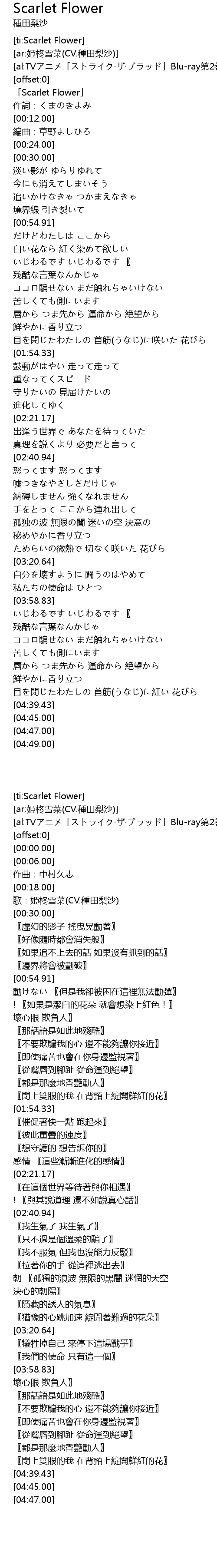 | [04:31.00] | 目を閉じたわたしの 首筋(うなじ)に紅い 花びら |