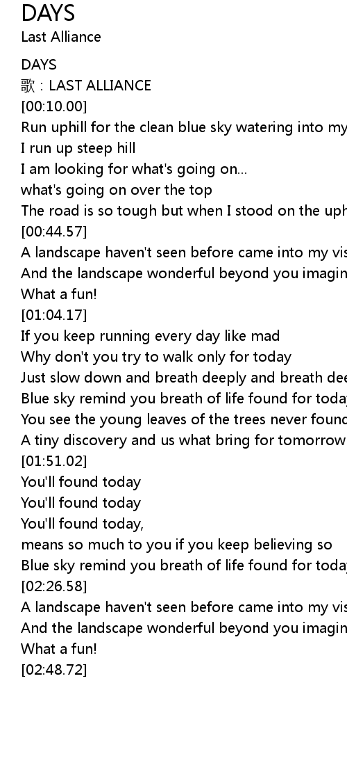 | [02:19.96] | Blue sky remind you breath of life found for today |