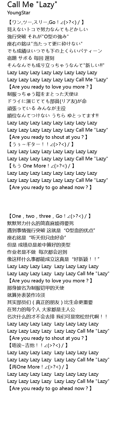 | [02:45.91] | Lazy Lazy Lazy Lazy Lazy Lazy Call Me "Lazy" |
