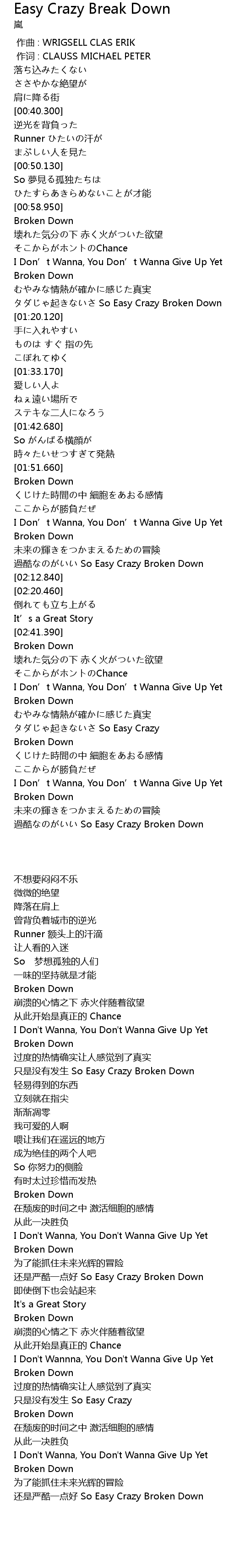 | [03:17.980] | 過酷なのがいい So Easy Crazy Broken Down |